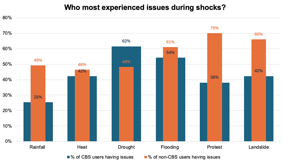 As well as interviews with providers, the study analysed secondary data across Nairobi, Lima, and Cape Town comparing CBS and non-CBS users during climate- and event-related shocks. CBS users consistently reported fewer toilet problems during floods, heavy rains, and most other crises.